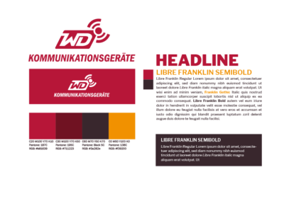 Für die WD Kommunikationsgeräte GmbH in Saarbrücken wurde ein komplettes Logo und CI Redesign vorgenommen. Außerdem wurde für geplante Videos ein Screenkit erstellt. Dieses umfasst ein Intro, eine animierte Banderole und ein kurzes Intro/Outro.